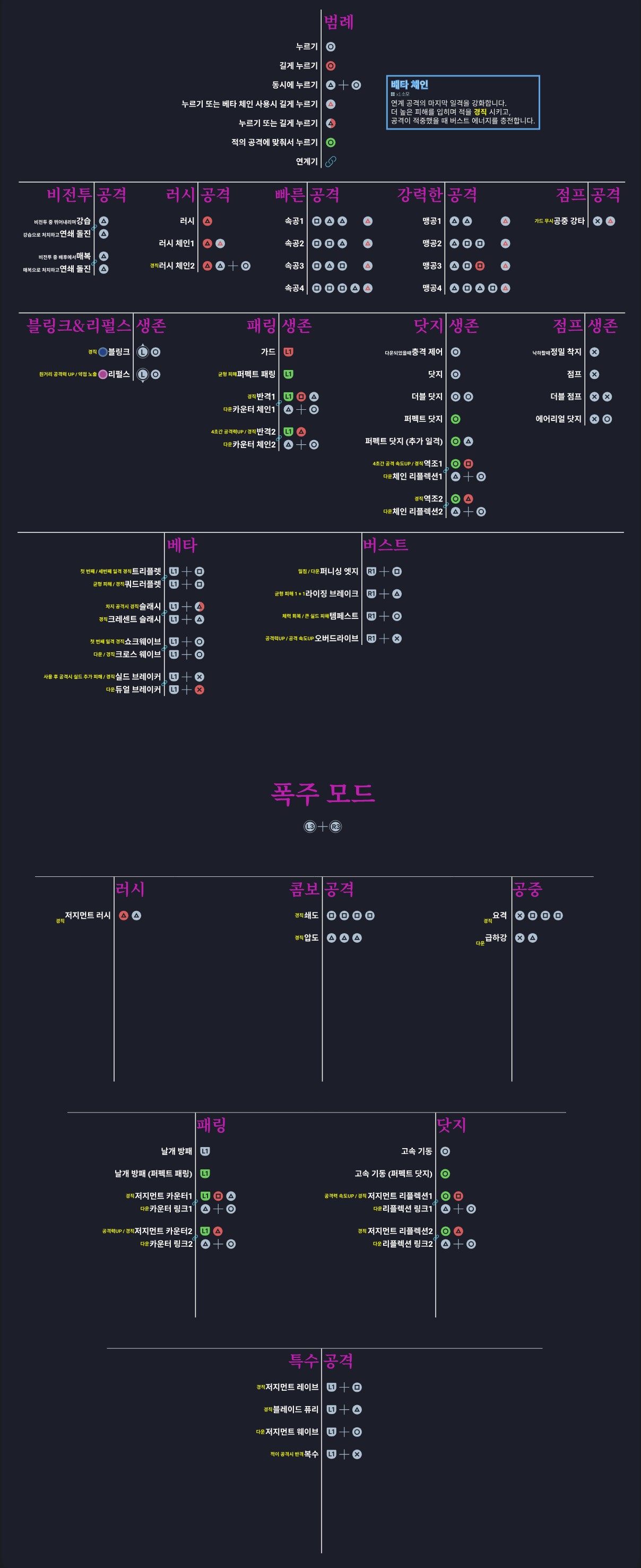 * 퍼펙트 닷지 (추가 일격)의 세모 버튼이 베타 체인 버튼으로 다시 변경